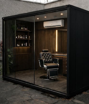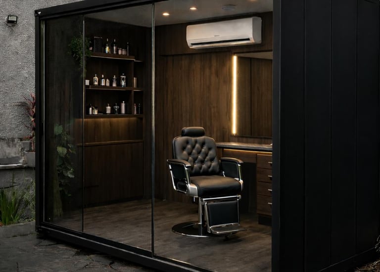 Espaço compacto ideal para barbearias móveis